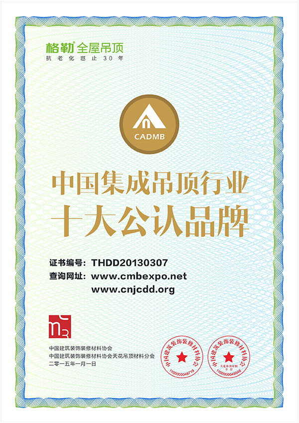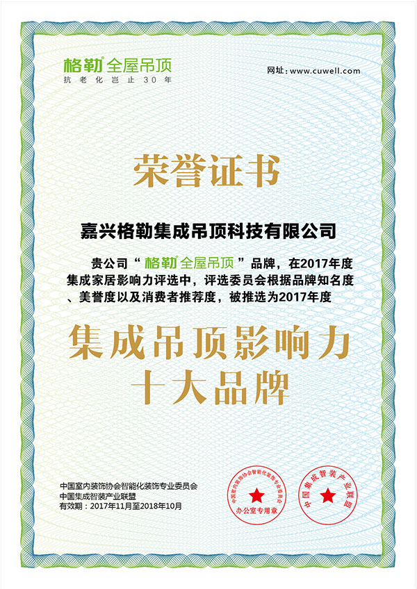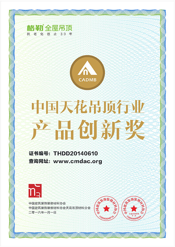 6月被授予“互聯(lián)網(wǎng)吊頂?shù)谝黄放啤保槐皇谟琛爸袊?guó)綠色環(huán)保產(chǎn)品”;