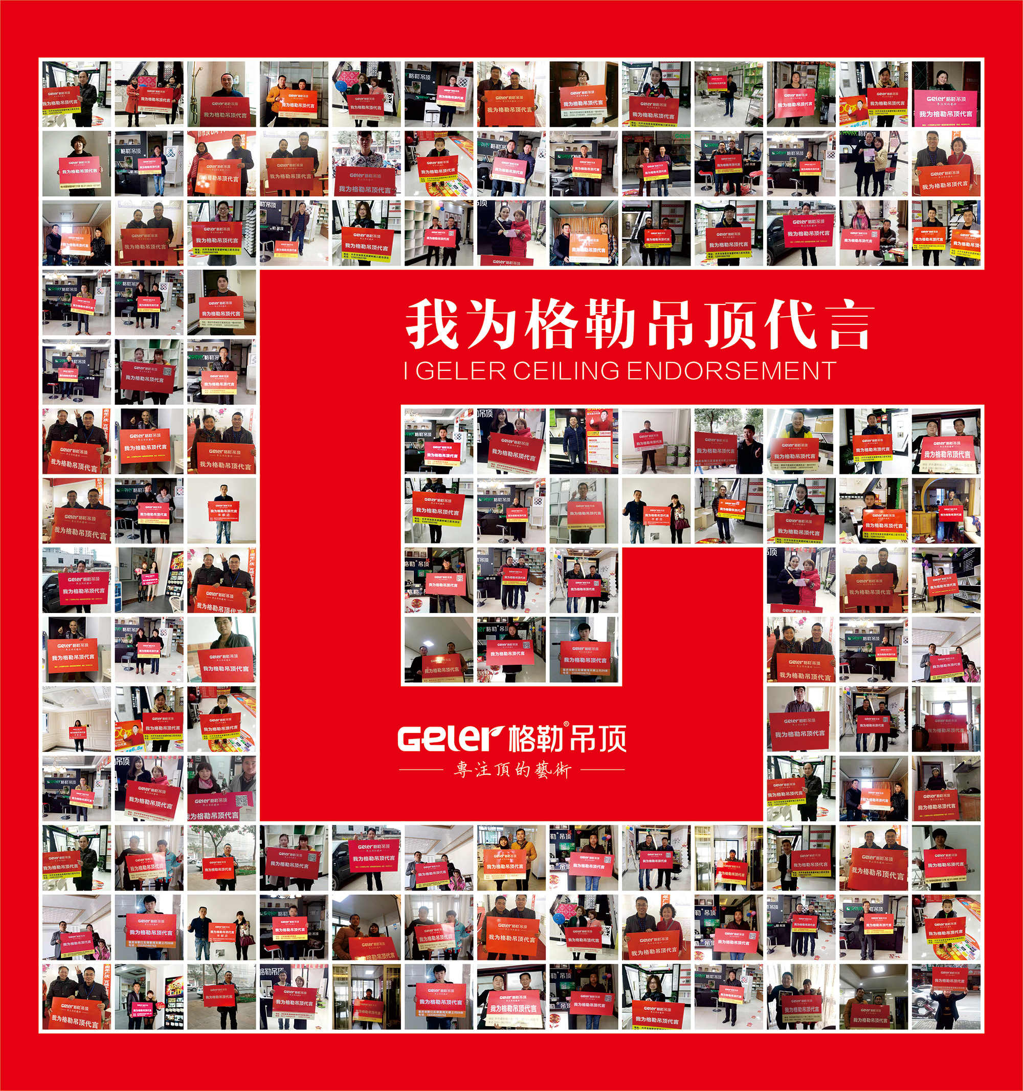 由格勒集成吊頂攜手和君智業(yè)共同打造的“我為格勒代言”全國聯(lián)動(dòng)活動(dòng)落下帷幕,大品牌成就大業(yè)績(jī),高質(zhì)量成就好口碑。此次聯(lián)動(dòng)活動(dòng)全國各地的格勒人展現(xiàn)出別樣的風(fēng)采,格勒的藝術(shù)吊頂一馬當(dāng)先,格勒人以專業(yè)的團(tuán)隊(duì)、品牌巨大的優(yōu)惠讓利力度,攬獲爆棚人氣勢(shì)不可擋!20天的時(shí)間里,在中國大地掀起一片紅色的“格勒旋風(fēng)”,參加的每一位經(jīng)銷商都順利完成任務(wù),甚至超額完成。