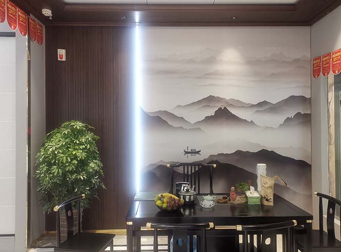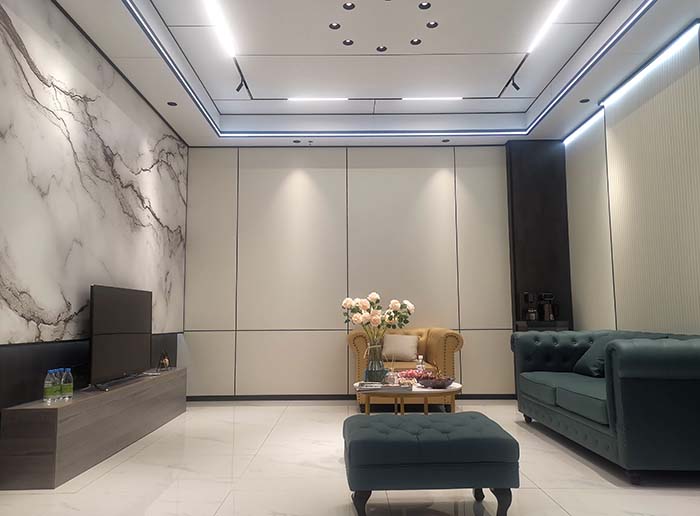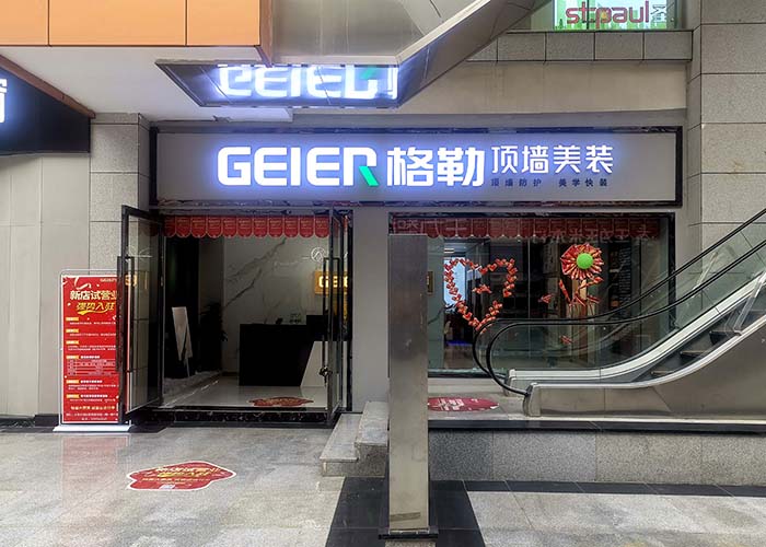 一進(jìn)入店里,干凈整潔的環(huán)境讓人感覺(jué)非常舒適。作為頂墻一體店,店內(nèi)的吊頂、墻面等裝修用的也是格勒的產(chǎn)品,可以說(shuō)是“一步一景”,無(wú)需進(jìn)入樣板間,只在曲折回轉(zhuǎn)間便能見(jiàn)到格勒頂墻之美。